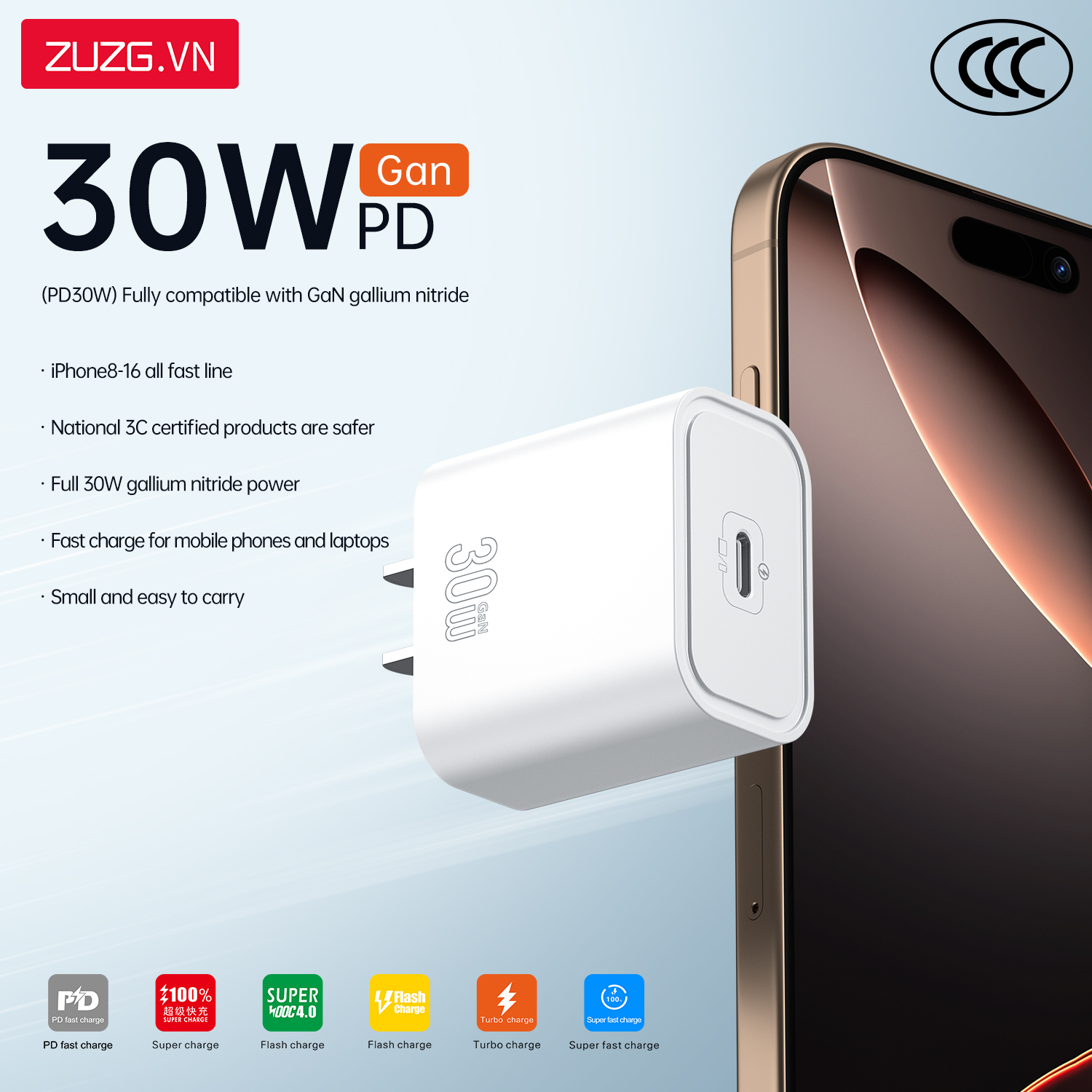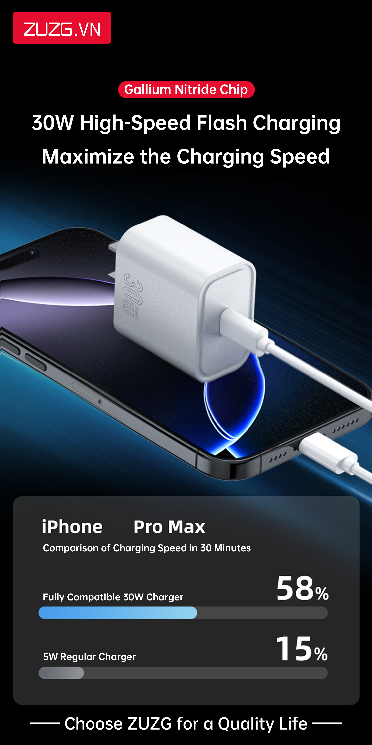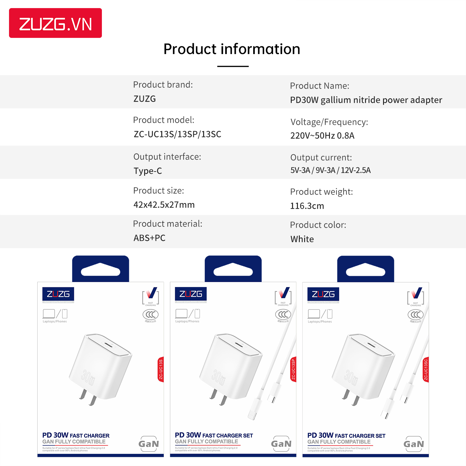 Bộ GaN sạc nhanh 30W ZUZG - UC13SC