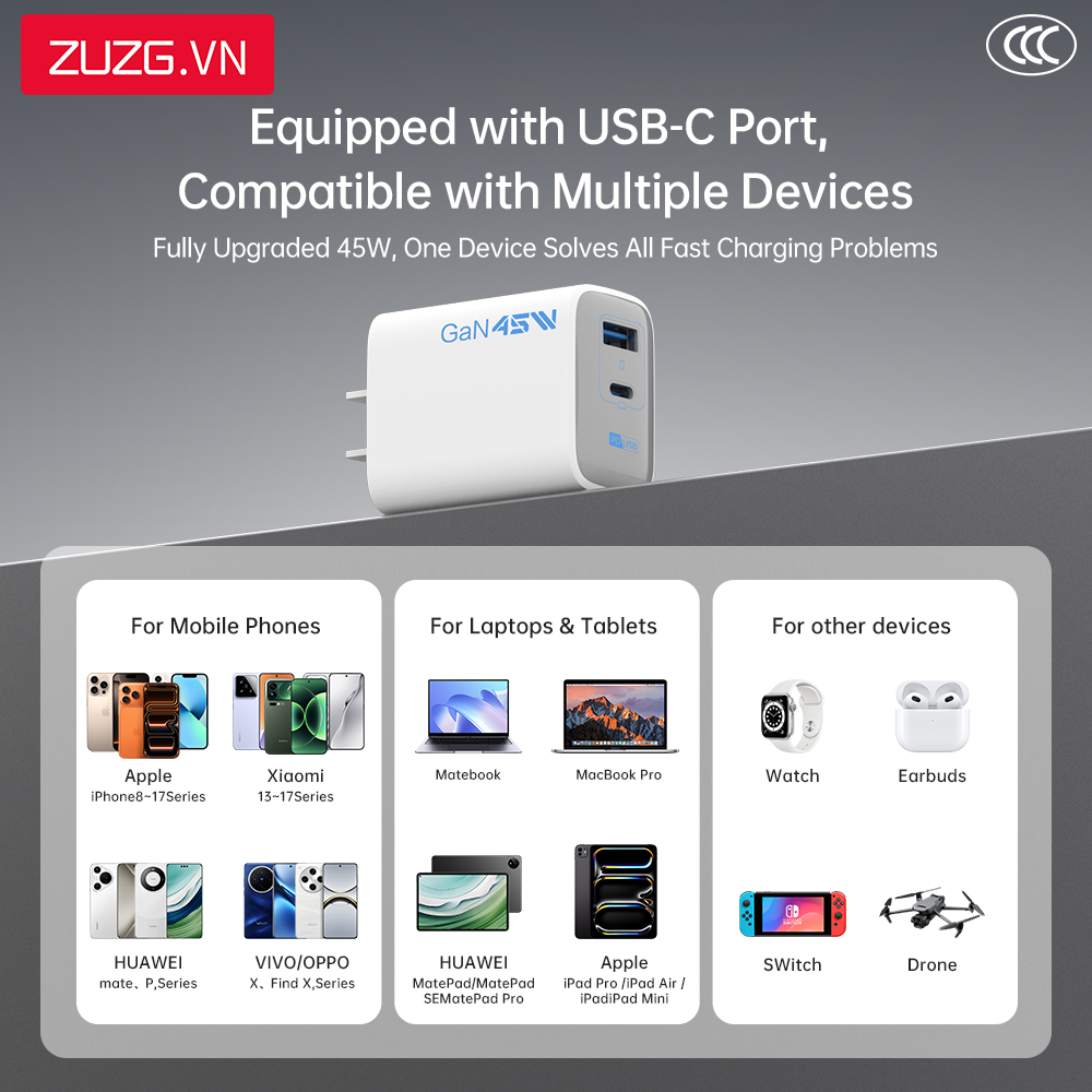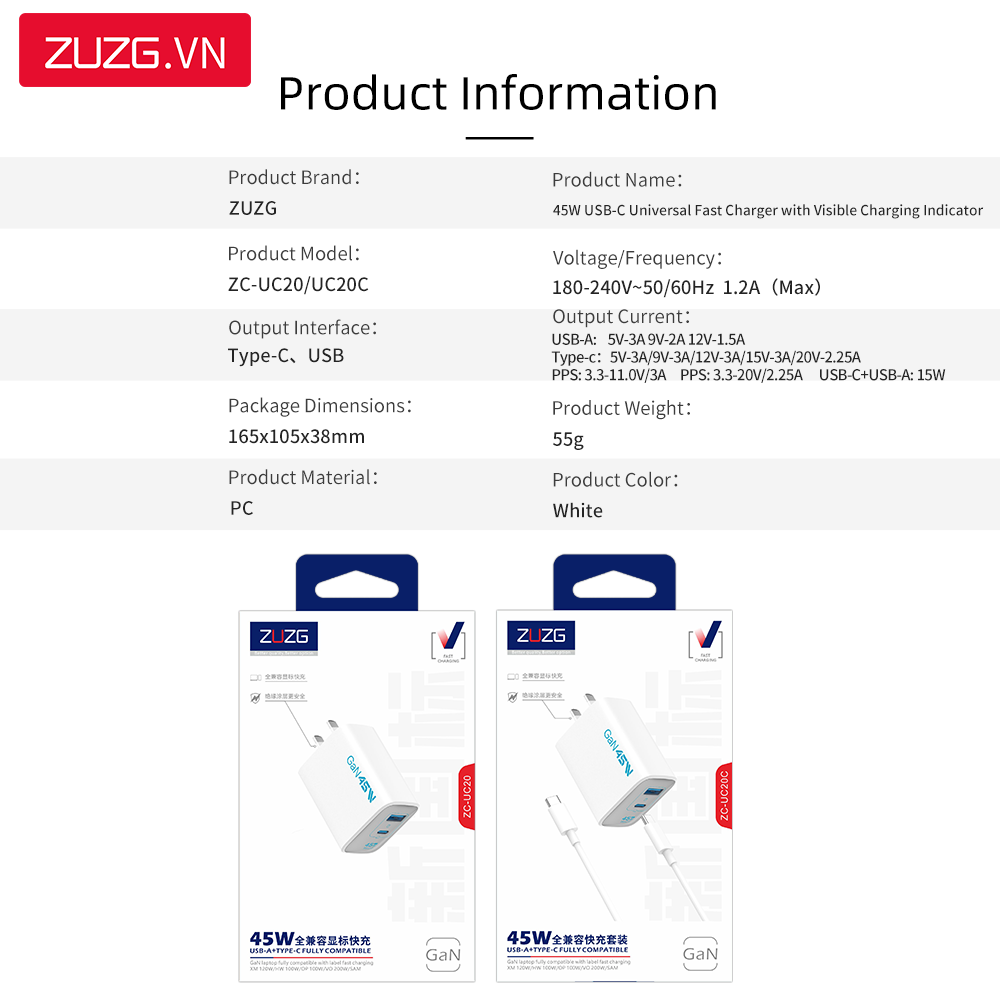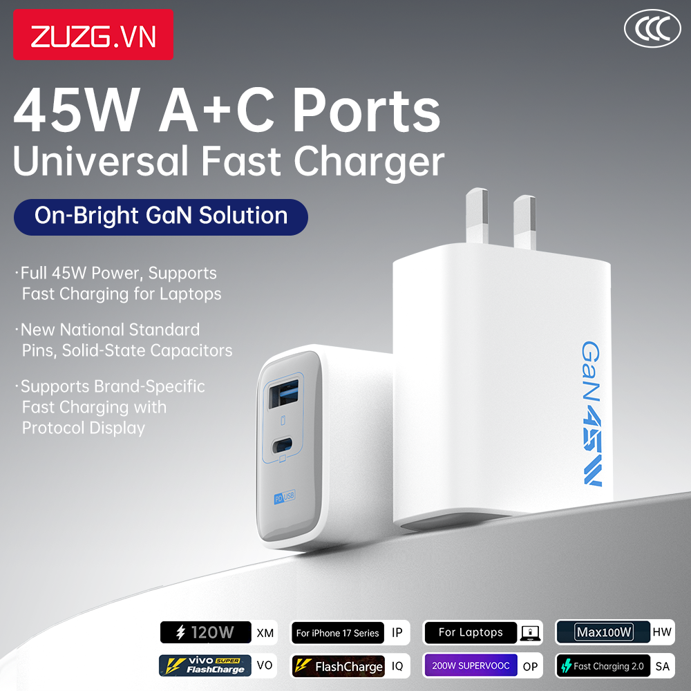 Bộ GaN sạc nhanh 45W A+C ZUZG - UC20C