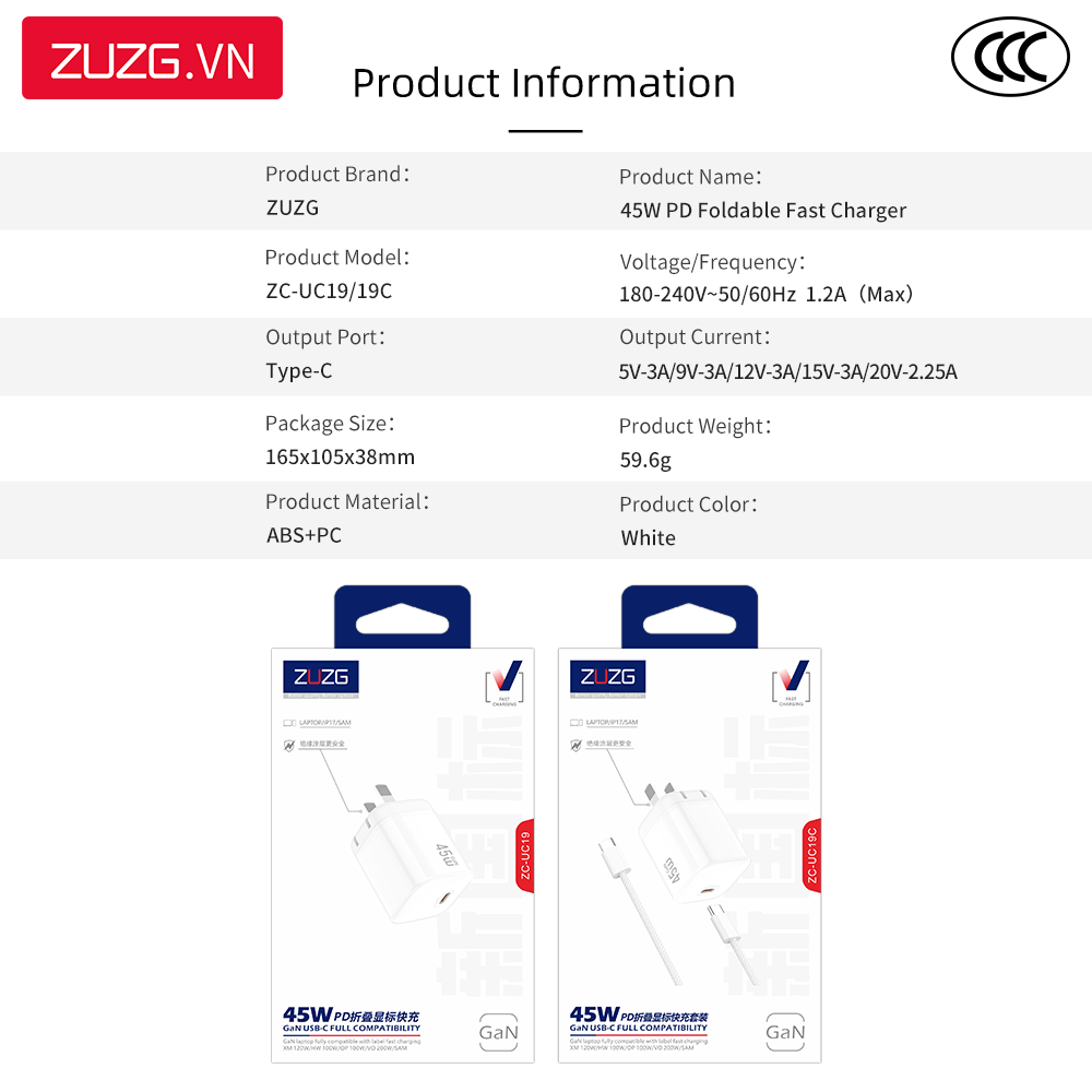 Bộ GaN sạc nhanh 45W ZUZG - UC19C