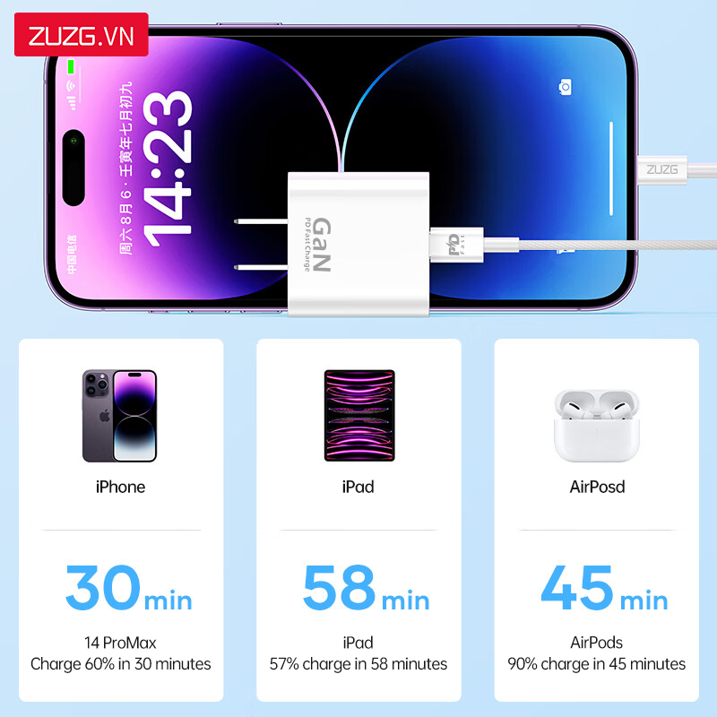 Bộ GaN sạc nhanh PD20W ZUZG PD02i