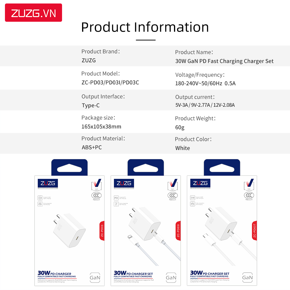 Bộ sạc nhanh 30W C-C ZUZG - PD03T