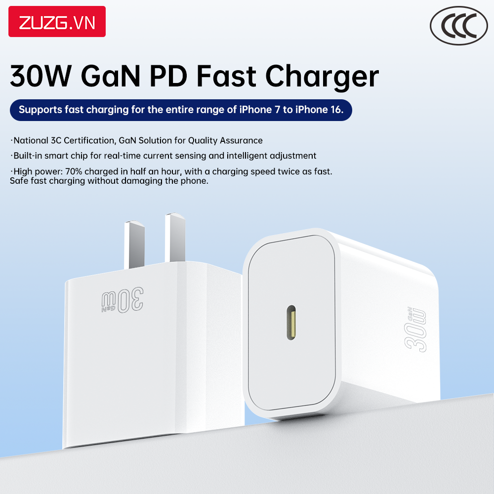 1. Sạc nhanh 30W hỗ trợ iPhone 7G - 17PRM, Android