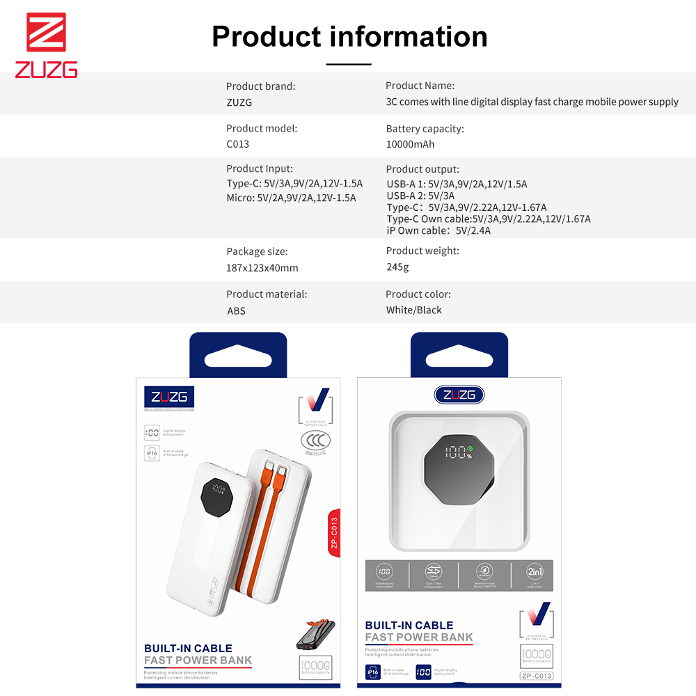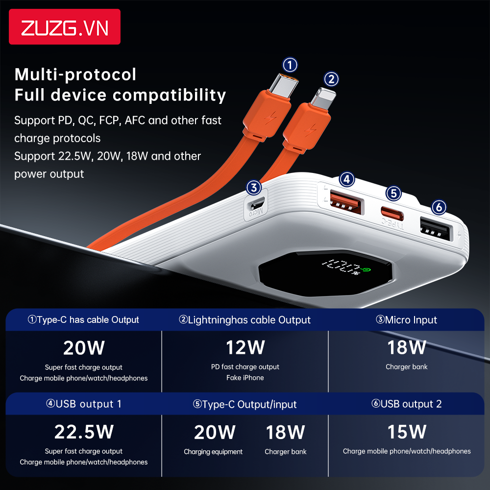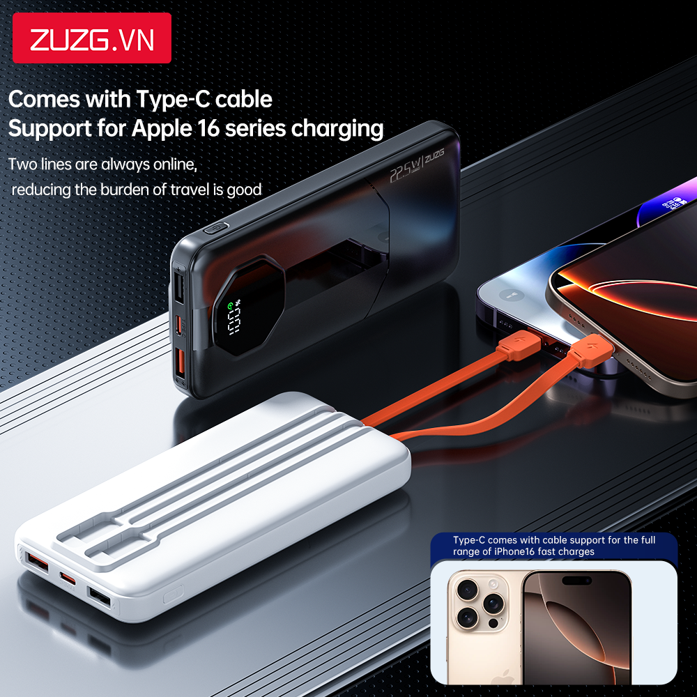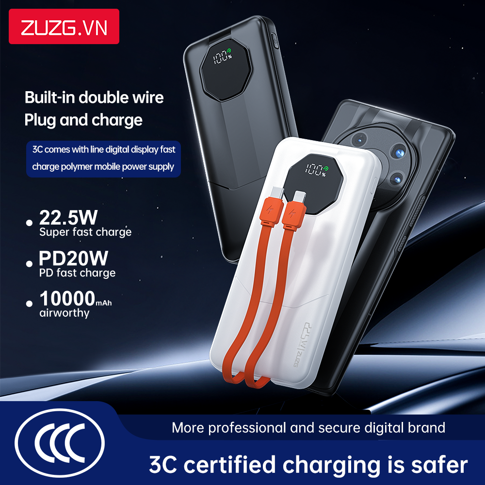 Sạc dự phòng 10000mAh 22.5W liền dây ZUZG - C013