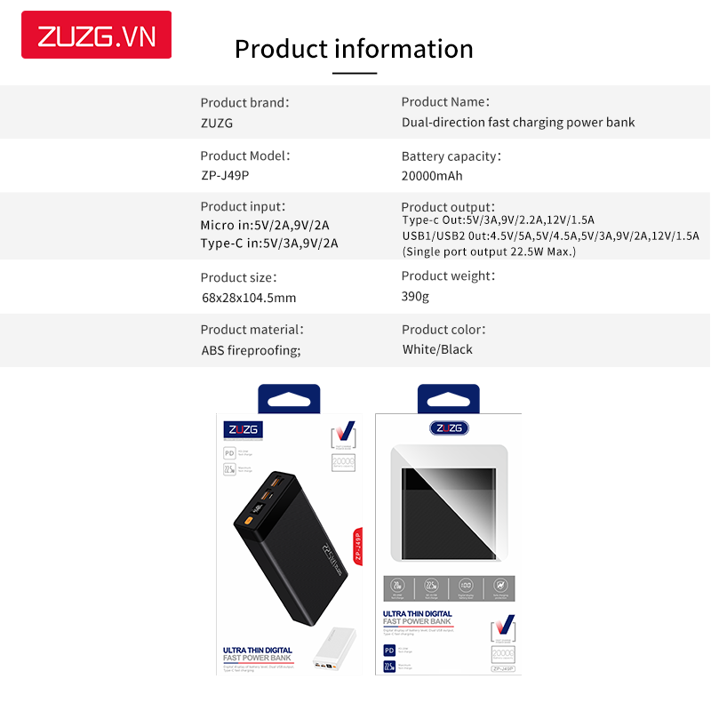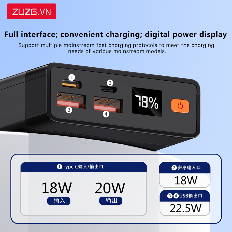 ZUZG 20000mAh – Năng lượng gấp đôi, trải nghiệm gấp bội!