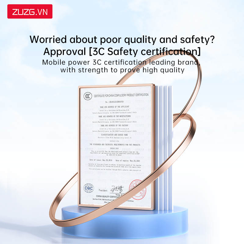 Chứng nhận 3C về chất lượng, an toàn, được phép sử dụng trên máy bay