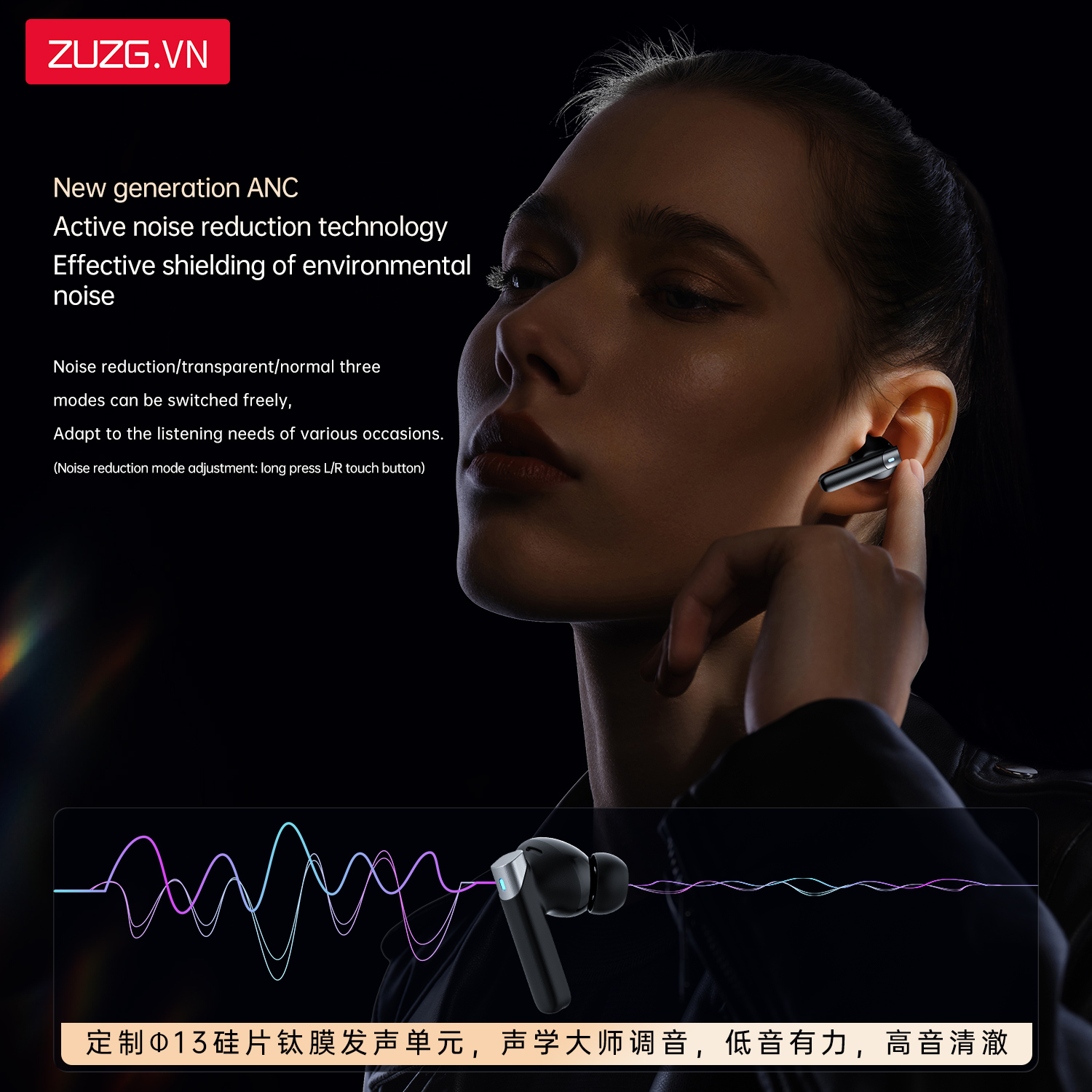 Sử dụng công nghệ ANC giảm tiếng ồn, linh động cùng chế độ xuyên âm cho âm thanh cực nét, chân thực
